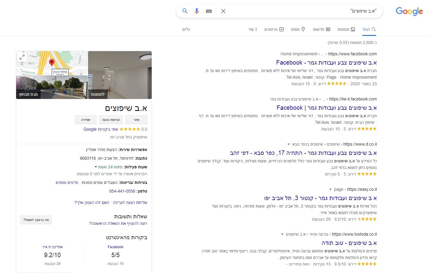 הדגמה איך זה עובד בדיקה אם שם עסק בגוגל?
